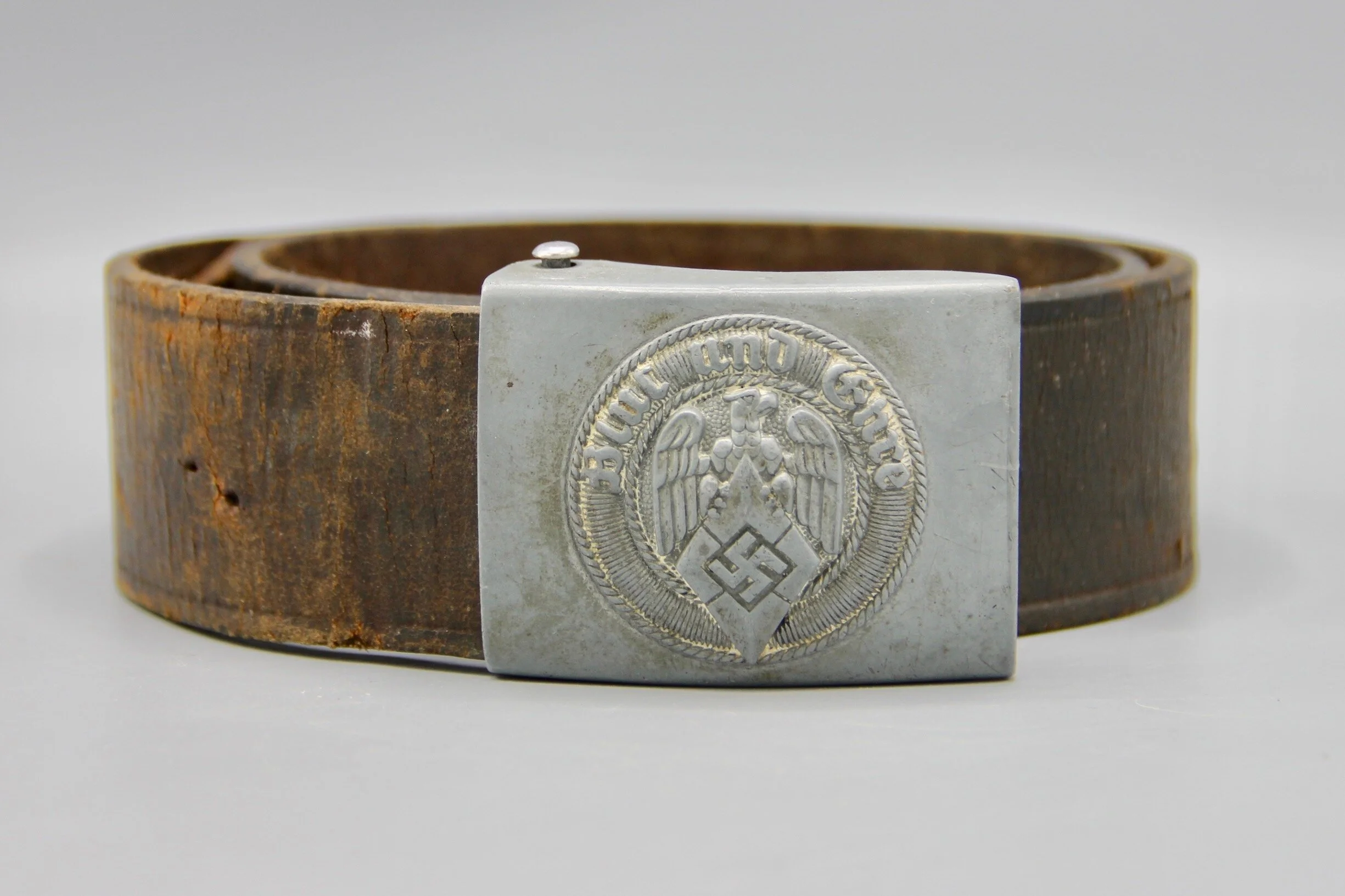 Up for sale is a very nice and original German WWII Hitler Youth Belt and Buckle. This HJ belt buckle is marked : RZM M4 / 22