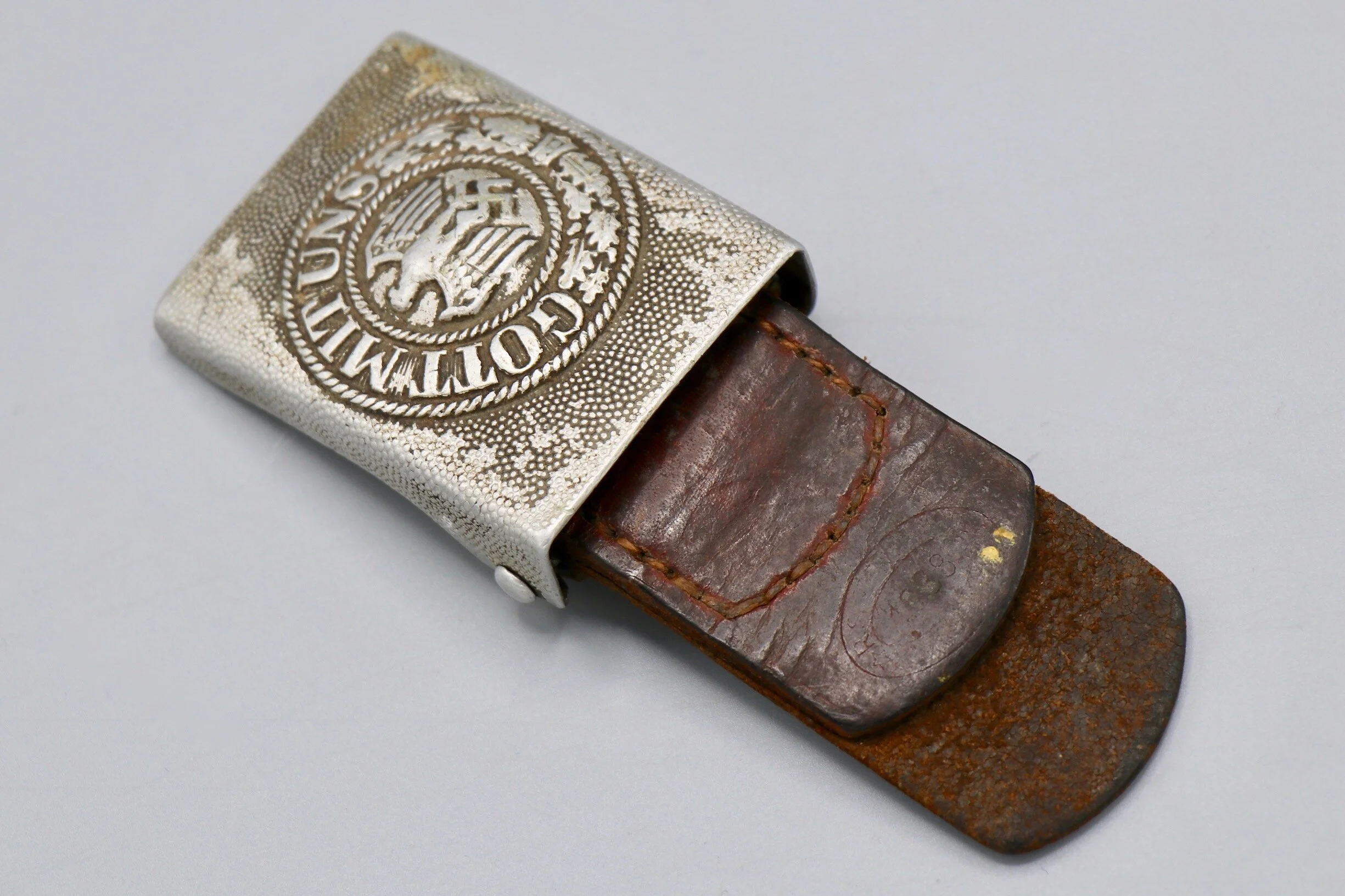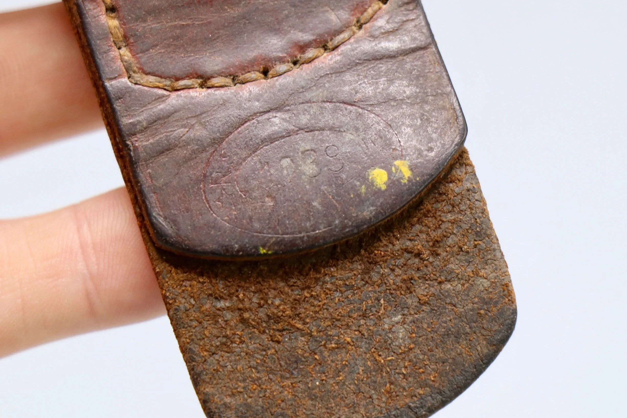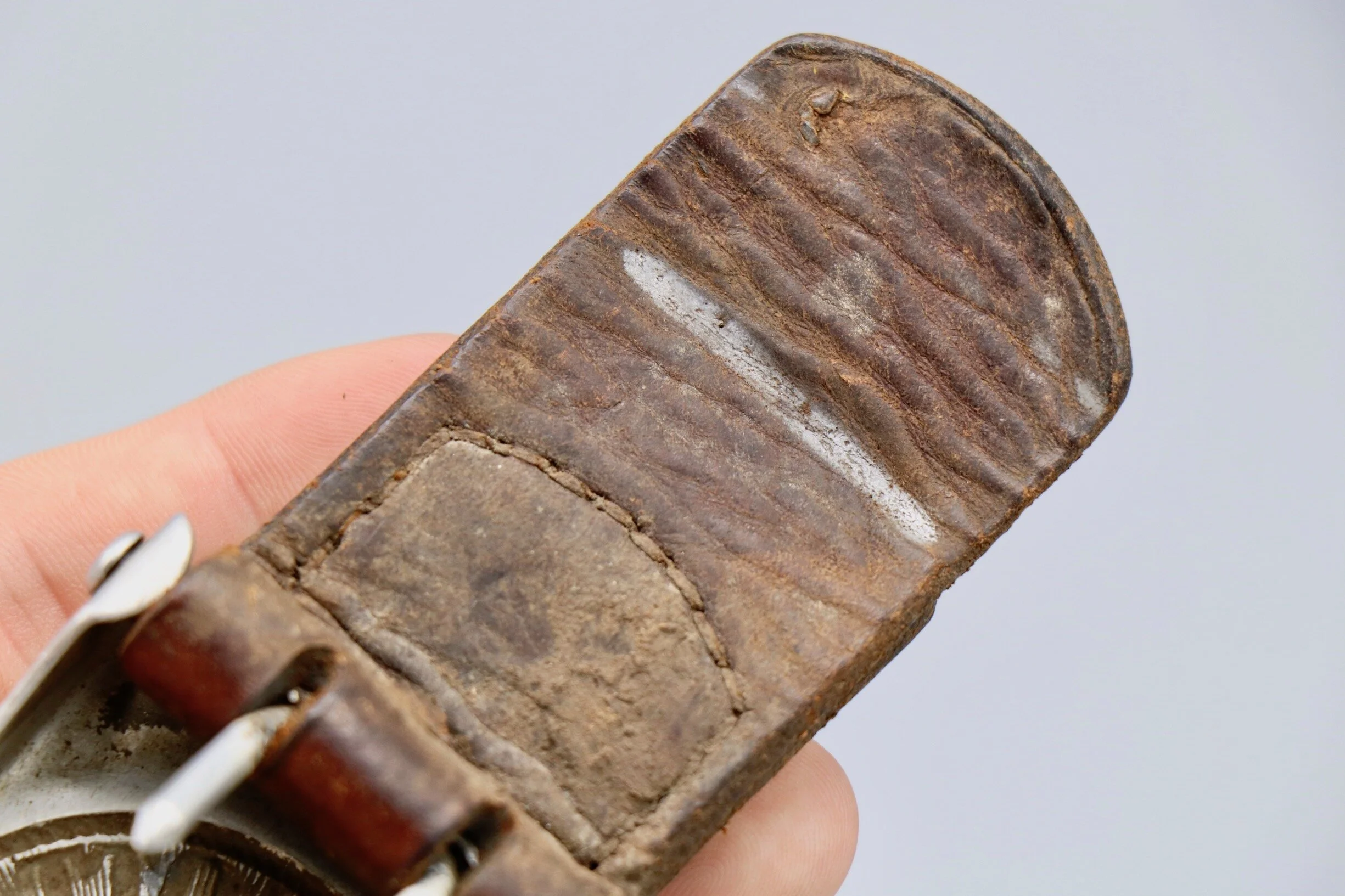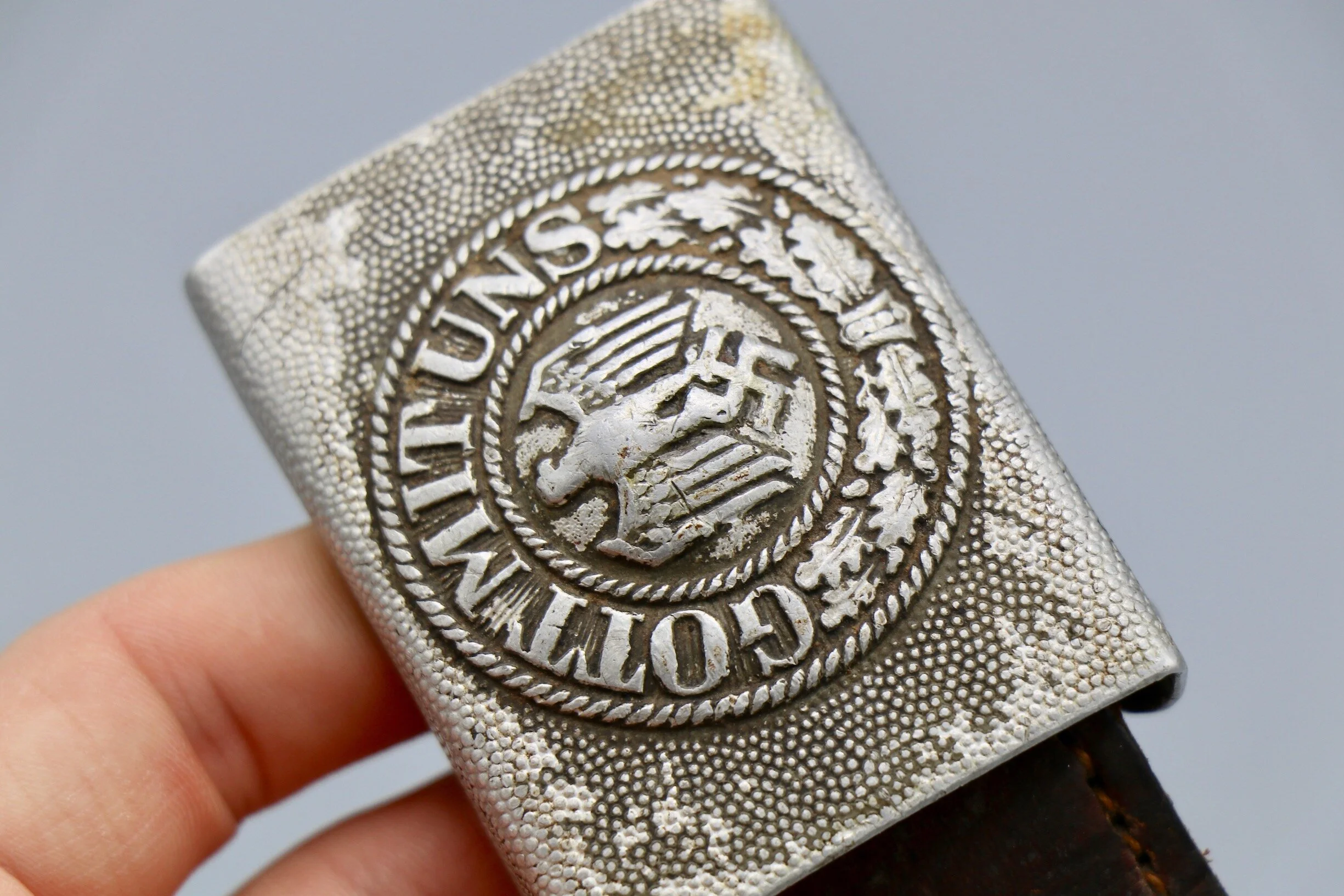 Up for sale is a very nice and original German WWII Heer belt buckle. This set featured an aluminium painted Heer belt buckle made by : R. Sieper & Sohne 1938 , or RS&S 1938. This belt buckle shows its age with a great patina and rich colors to the leather. It would be a great addition to any collection!
