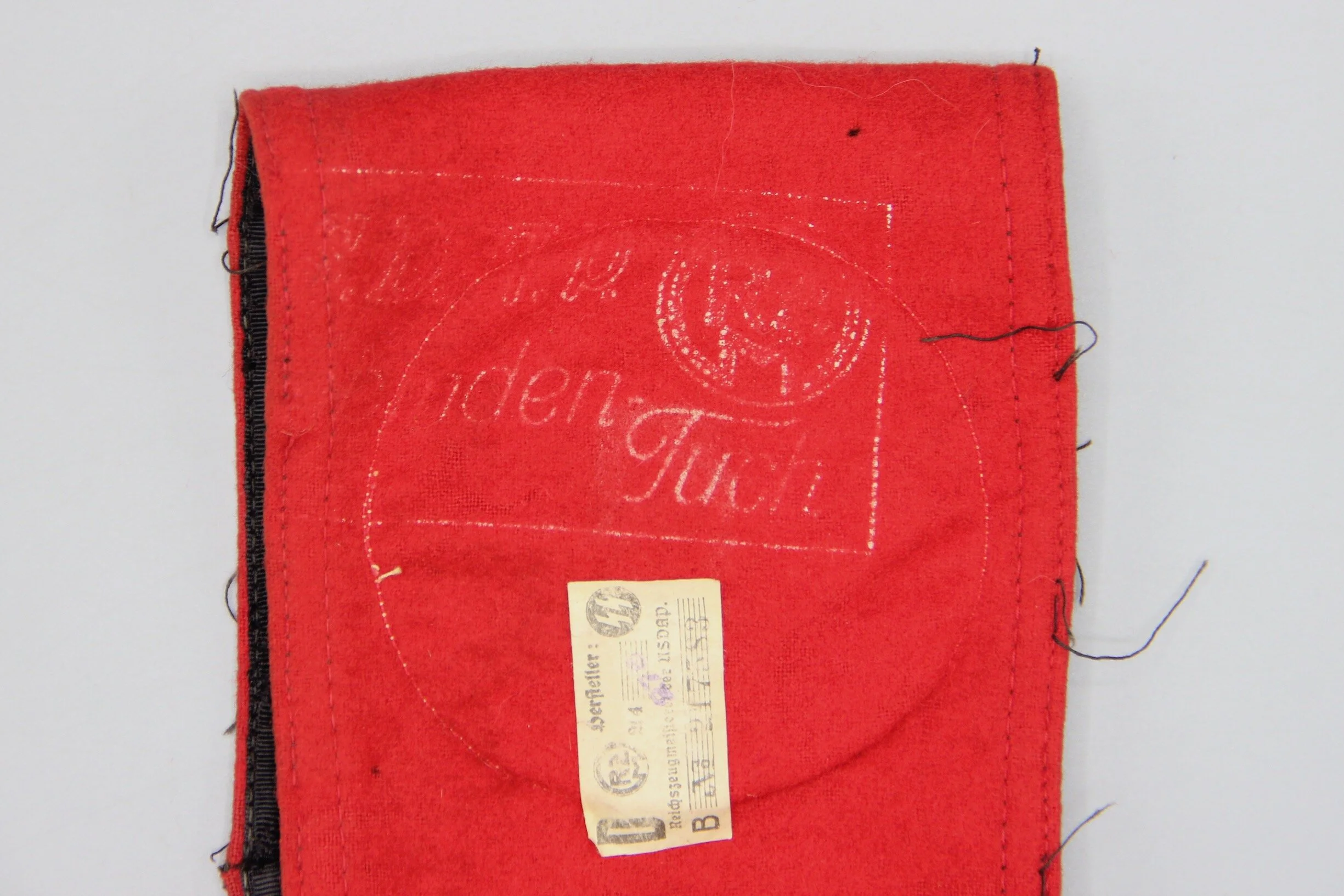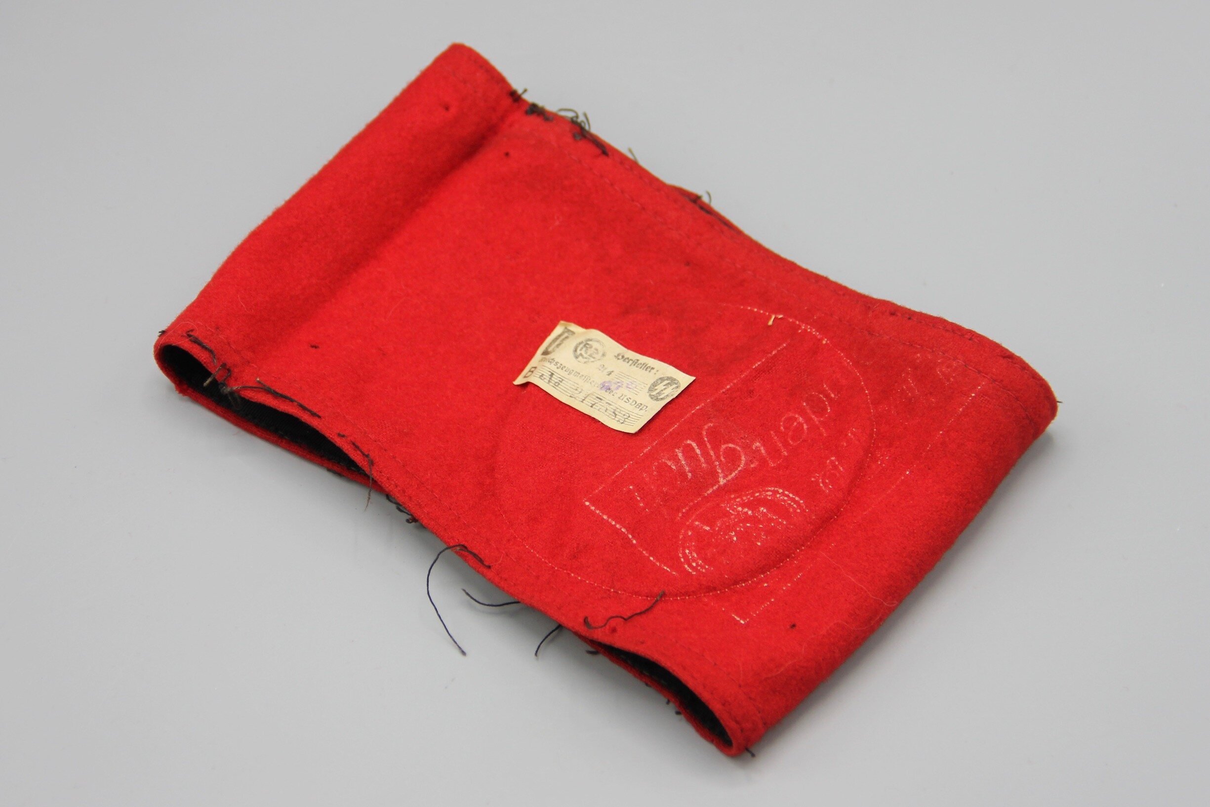 We believe the white stamp reads : NSDAP Armbinden-Fuch RZM