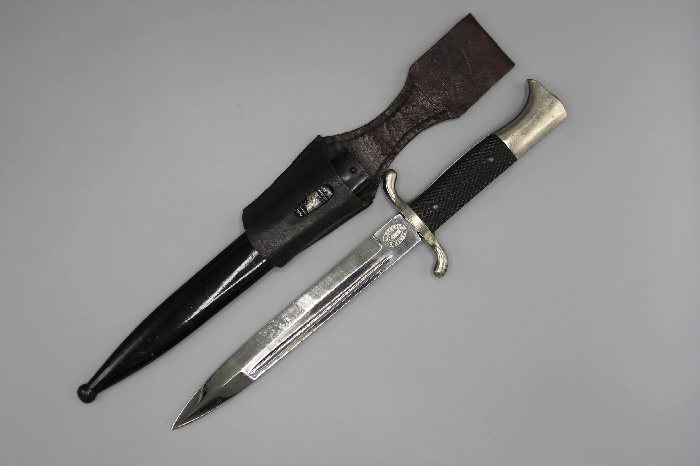 Axis Dagger Price Guide › Original German WWII Fireman Dagger and Frog FW Holler Solingen Image 1 of 9 Image 2 of 9 Image 3 of 9 Image 4 of 9 Image 5 of 9 Image 6 of 9 Image 7 of 9 Image 8 of 9 Image 9 of 9 Original German WWII Fireman Dagger and Frog FW Holler Solingen $135.00 Sold Out Up for sale is a beautiful and original Fireman Dagger and Frog. This dagger is marked FW Holler Solingen. Sold Out Added! Up for sale is a beautiful and original Fireman Dagger and Frog. This dagger is marked FW Holler Solingen.