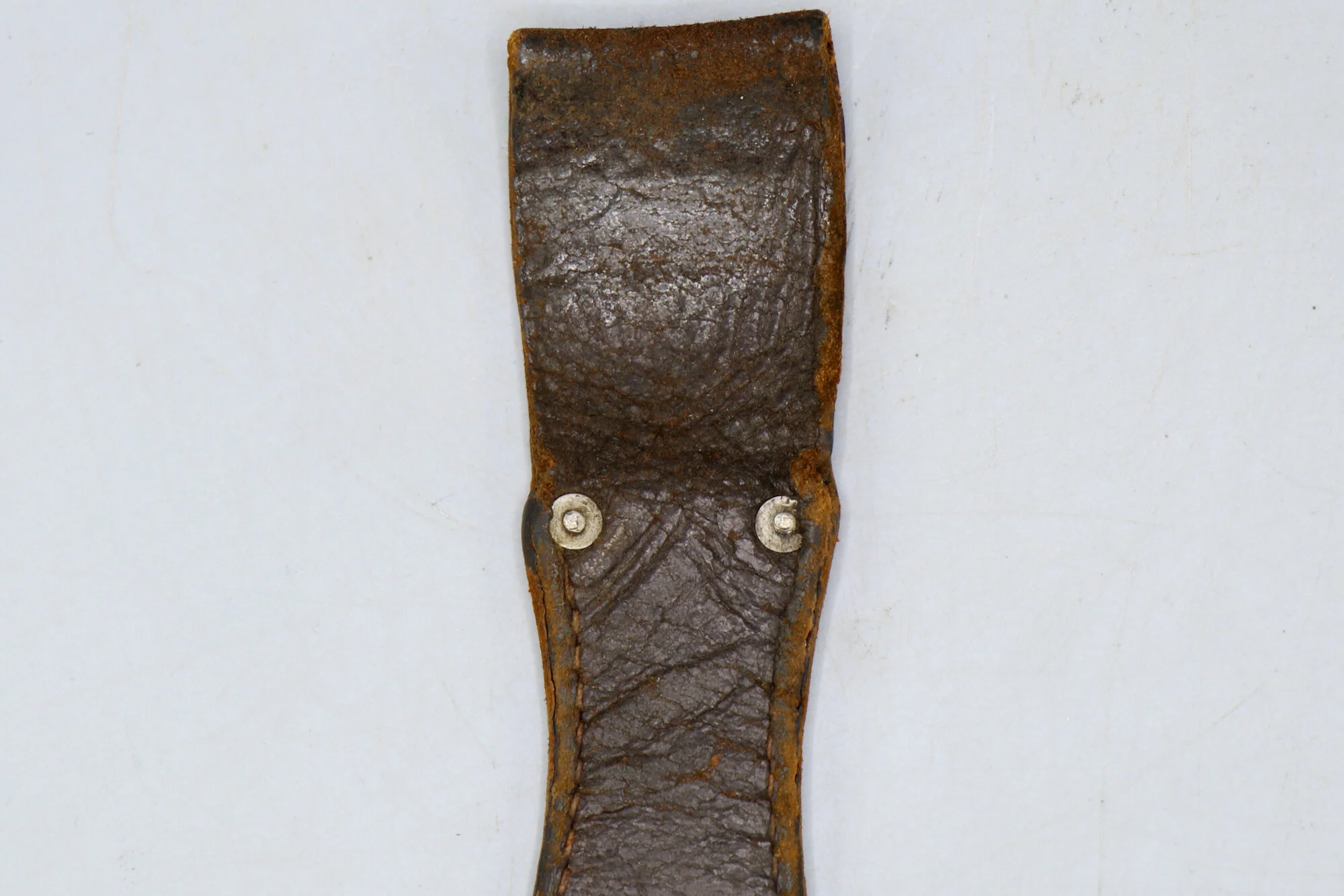 Axis Dagger Price Guide › German WWII Unit Marked Bayonet Frog Image 1 of 10 Image 2 of 10 Image 3 of 10 Image 4 of 10 Image 5 of 10 Image 6 of 10 Image 7 of 10 Image 8 of 10 Image 9 of 10 Image 10 of 10 German WWII Unit Marked Bayonet Frog $85.00 Sold Out Up for sale is a very nice and original German WWII Unit Marked Bayonet Frog. Sold Out Added! Up for sale is a very nice and original German WWII Unit Marked Bayonet Frog.
