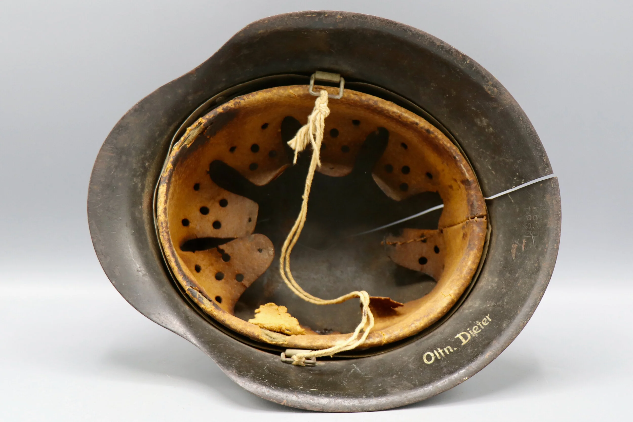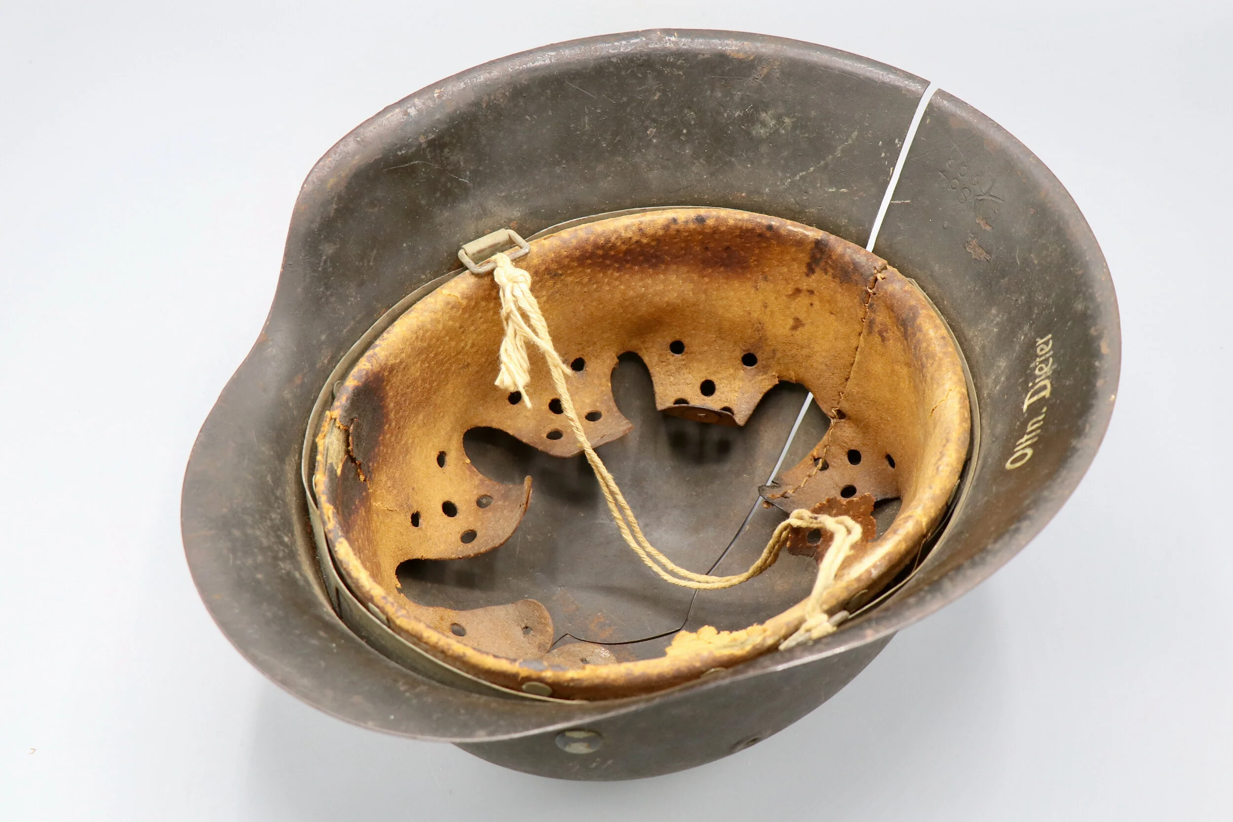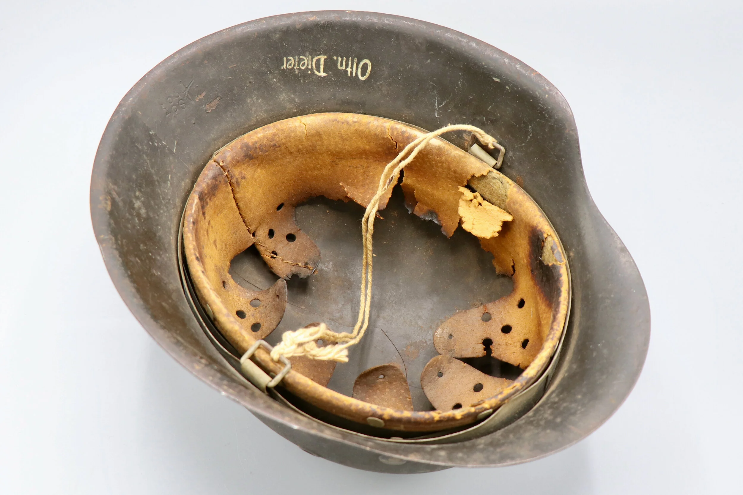 Up for sale an original German WWII M42 SD Heer helmet. This helmet has been cleaned and someone treated the leather liner. The inside brim was named by its original owner.