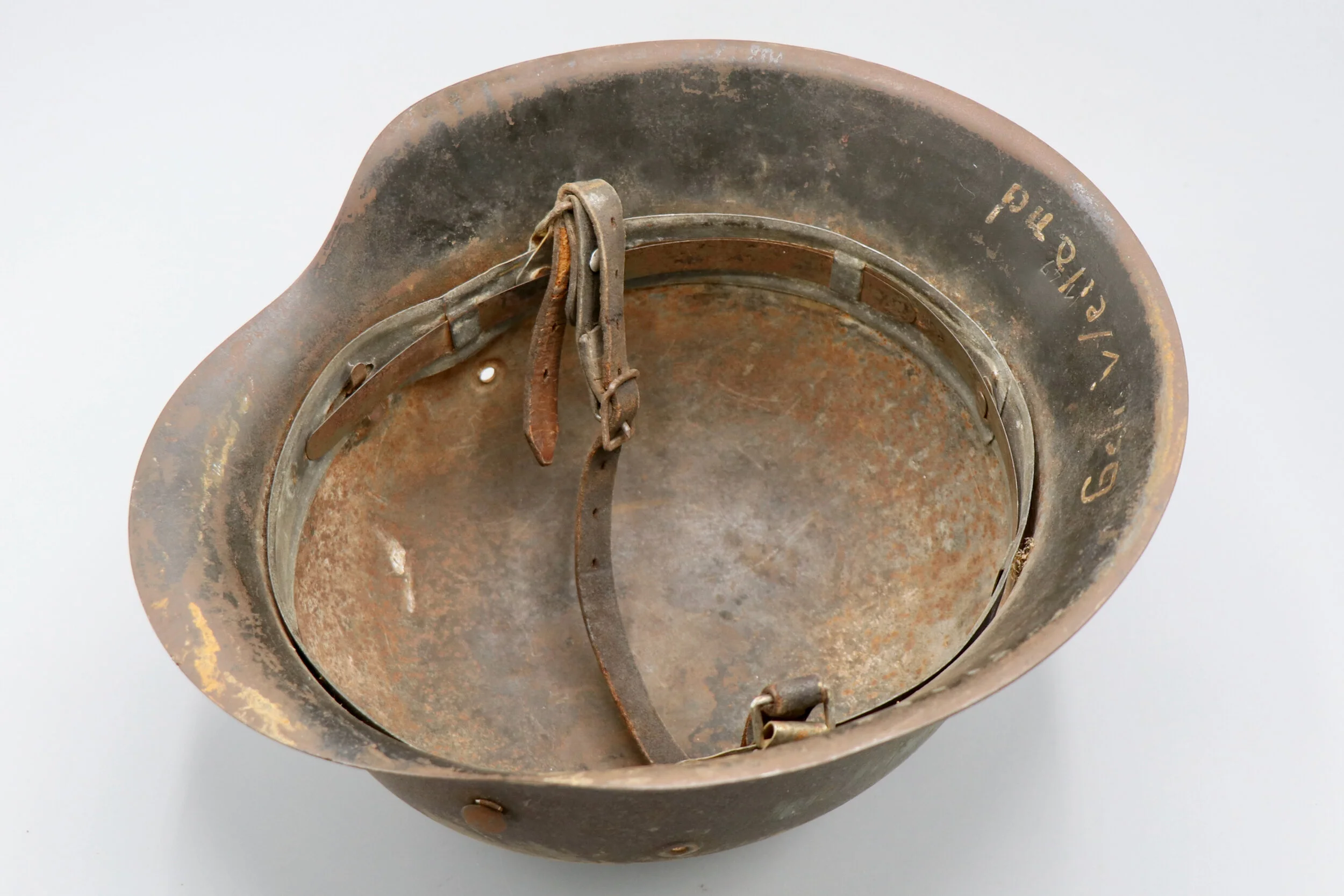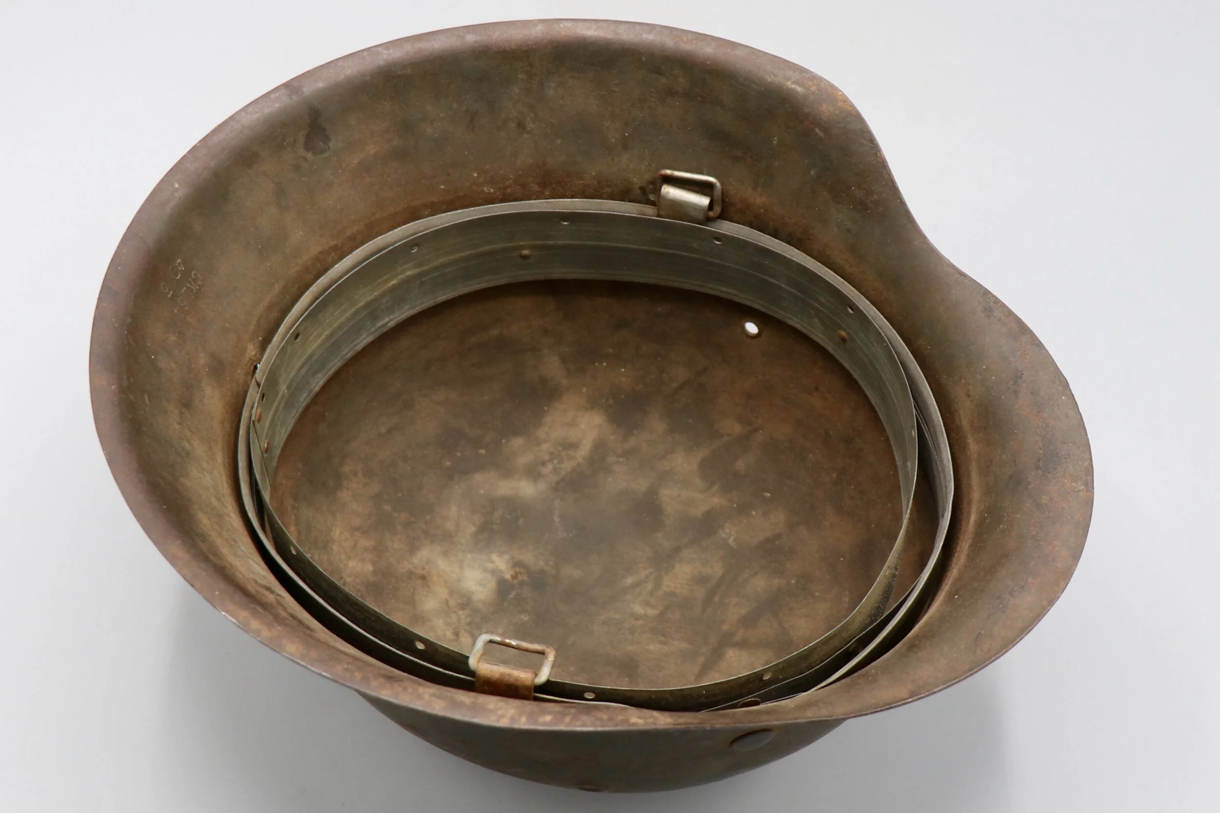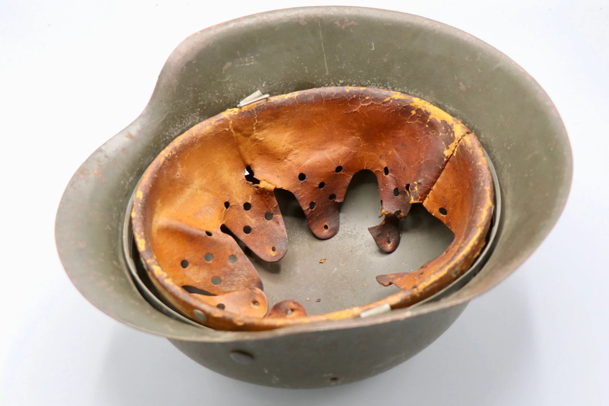 Up for sale an original German WWII M42 SD Heer helmet. This helmet has been cleaned and someone treated the leather liner. The inside brim was named by its original owner.
