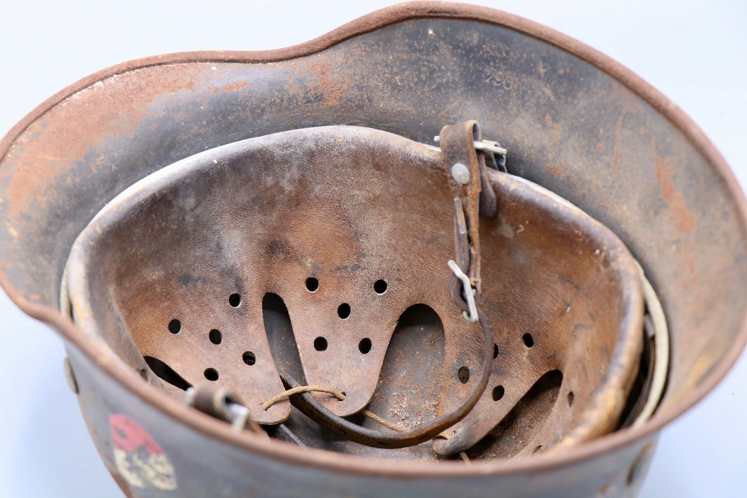 After the helmets capture, it sat in the closet of the Veteran in near perfect condition for 60+ years until around 2005. It is from our understanding that the veteran died at this time, and the helmet was moved to a new location where rust started to take over the shell. It is such a shame as well, as the helmet could have truly been a stunning example if it was not for this. All in all though the helmet is a great piece, and if kept in a climate controlled environment could remain as is for many years!