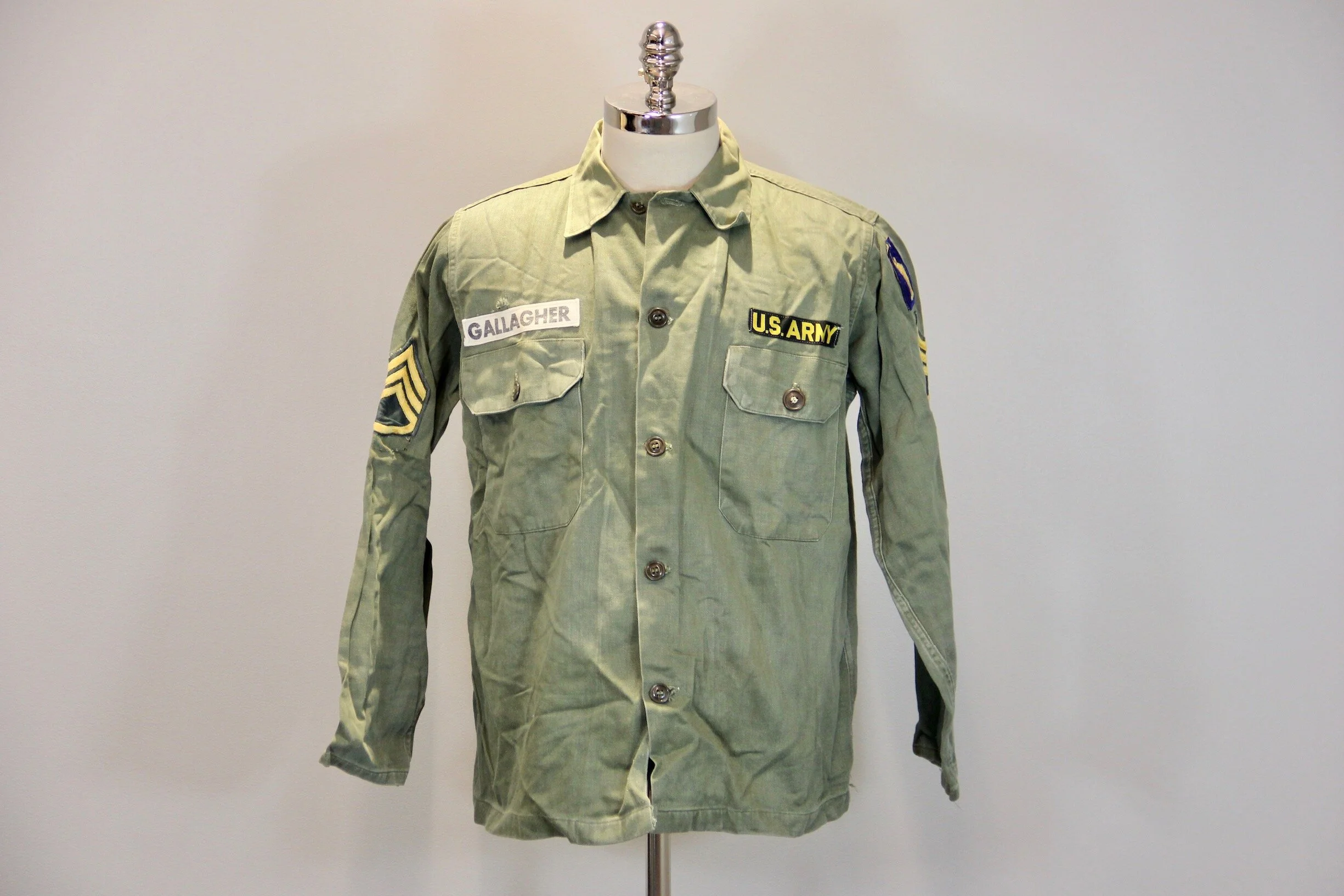 Up for sale is an original US Korean War Era Army M-1950 Shirt. This shirt was issued to a member of the 77th Sustainment Brigade and was named to : Gallagher
