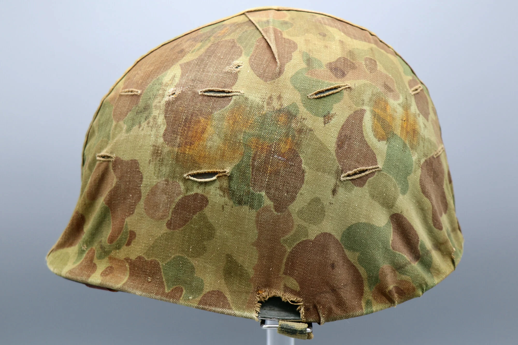 Korean War Price Guide › US Korean War USMC M1 Helmet with Frog Skin Cover Image 1 of 9 Image 2 of 9 Image 3 of 9 Image 4 of 9 Image 5 of 9 Image 6 of 9 Image 7 of 9 Image 8 of 9 Image 9 of 9 US Korean War USMC M1 Helmet with Frog Skin Cover $625.00 Sold Out Up for sale is a very nice and original US Korean War USMC M1 Helmet with Frog Skin Cover. Sold Out Added! Up for sale is a very nice and original US Korean War USMC M1 Helmet with Frog Skin Cover.